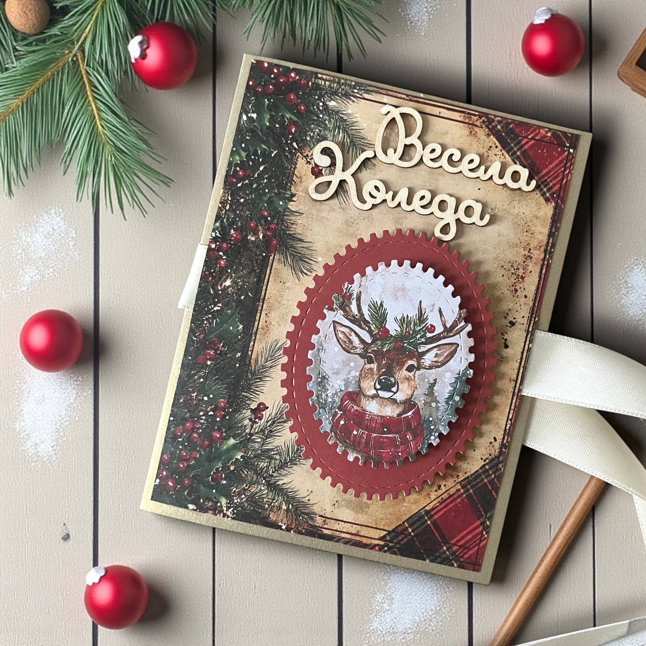 Картичка „Коледен елен“