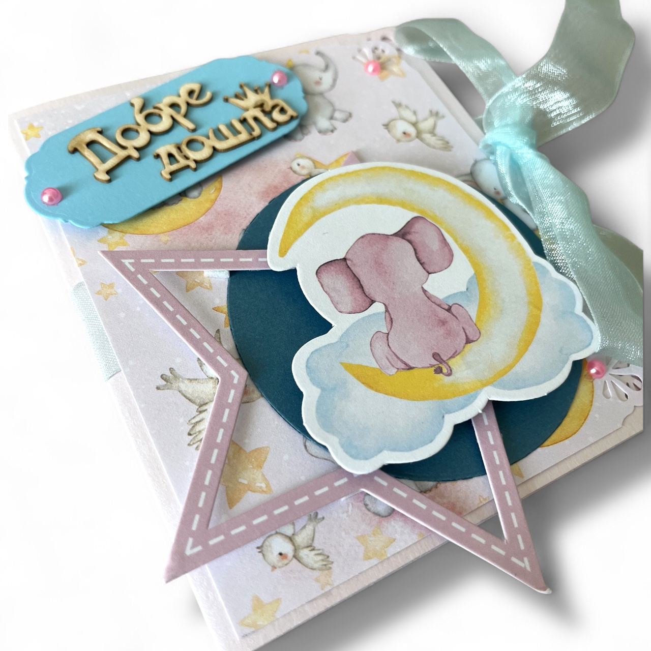 перлен картон, дизайнерски картон, дървени елементи, декоративни хартиени елементи, панделка от органза, декоративни камъчетаЕкспресна доставка в цялата страна с куриерска фирма Спиди.